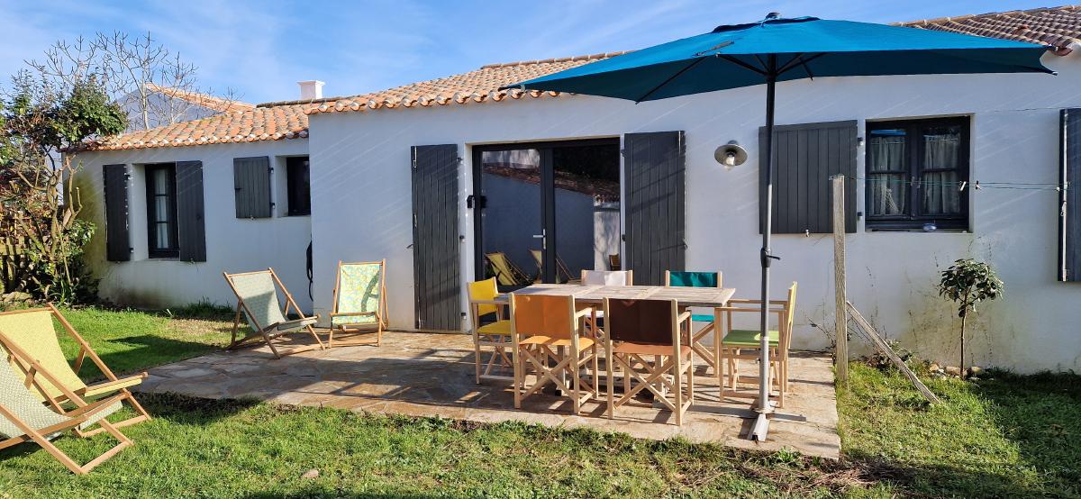 Après être entrés par le jardin commun, votre jardin est privatif : avec terrasse, chaises longues. Il est fermé par une clôture en bois.